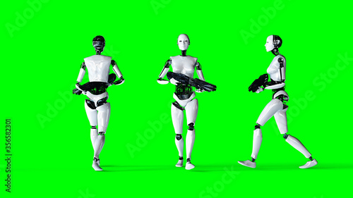 Futuristic humanoid female robot isolate on green screen. Realistic 3d rendering.