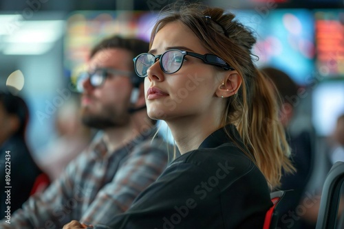 office, attractive, back, pain, young, businesswoman, posture, chair, screen, ergonomic, location, artificial, employee, well, workplace, bearded, intelligence, adjustment, technology, robotic, discomfort, eyeglass, innovation, modern, futuristic, groomed, keyword, holographic, describing