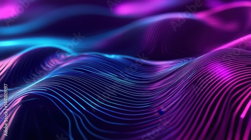 Futuristic Lines. Wavy Blue, Purple and Turquoise Curves in Hyperspace Illumination