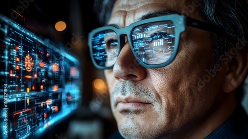 Futuristic Macro Shot CEO AI Holographic Displays Business Innovation Digital Device Concept