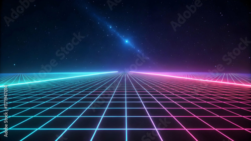 Futuristic Neon Grid with Starry Background and Cosmic Vibes