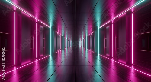 Futuristic Neon Lit Corridor with Cyberpunk Style and Techno Vibe