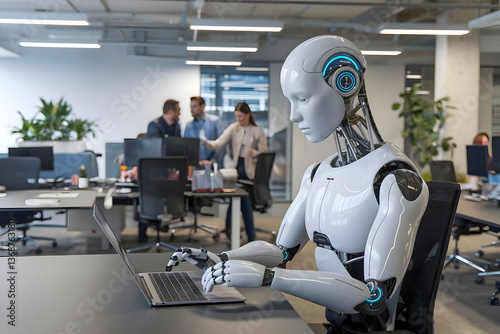 ai, robot, android, automation, office, business, future, technology, innovation, workplace, laptop, teamwork, artificial intelligence, digital, futuristic, collaboration, cyber, datum, coding, modern, smart, efficiency, industry, advanced, intelligence, software, corporate, productivity, computing, manpower, robotic, integration, electronic, high technology, professional, room, interior, businessman, computer, working