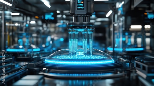 automation, technology, factory, industrial, machinery, manufacturing, production, medicine, pharmaceutical, syringe, robotic, future, innovation, science, research, process, assembly, line, equipment, engineering, industry, tech, digital, modern, advanced, high technology, efficient, precise, clean, sterile, automated, system, tube, liquid, blue, light, dark, metal, glasses