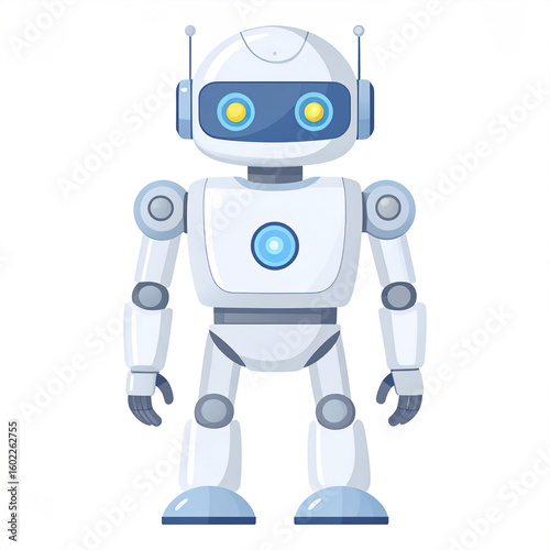 robot, futuristic, character, illustration, glowing, eye, antennae, technology, white, background, android, machine, android, artificial, intelligence, digital, electronic, automation, science, innovation, mechanical, cyborg, tech, modern, design, friendly, cartoon, blue, metal, contraption, robotic, future, smart, device, isolated, front, standing, artificial intelligence, science fiction