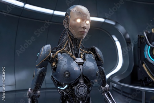 Futuristic robot design tech lab 3d render sci-fi environment close-up view innovation concepts