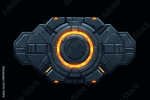 futuristic, science fiction, interface, digital, technology, science fiction, neon, glow, orange, circle, black, background, abstract, graphic, design, game, video game, spaceship, contraption, digital artwork