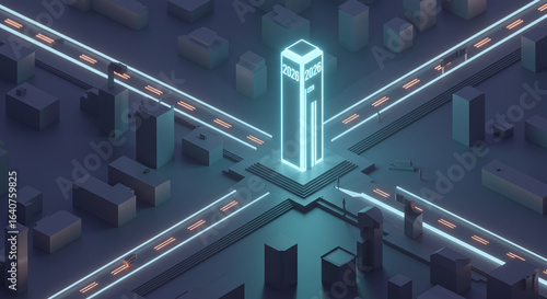 technology, future, city, smart, urban, infrastructure, network, modern, development, digital, innovation, progress, architecture, glowing, neon, road, building, skyscraper, light, night, isometric, three-dimensional, rendering, abstract, geometric, transportation, communication, 2026, high technology, city landscape