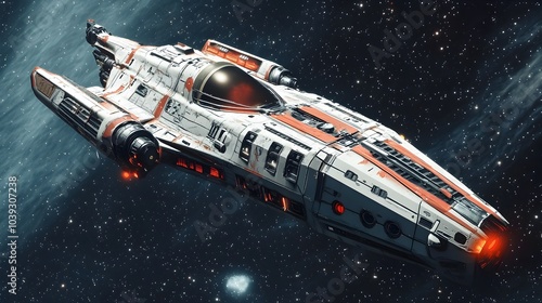 futuristic, spacecraft, science fiction, spaceship, space, vehicle, technology, digital artwork, three-dimensional, render, universe, celestial, cosmos, galaxy, interstellar, flight, transportation, energy, power, stealth, streamlined, combat, defense, attack, speed, control, engine, radar, targeting, weapon, missile, laser, design, engineering, aerodynamic, form, worked, aesthetic, advanced, modern, concept, fantasy, fiction, modular