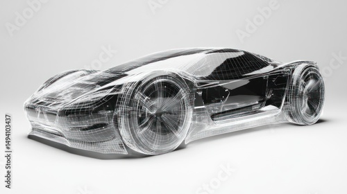 Futuristic sports car design concept with wireframe aesthetics and innovative style