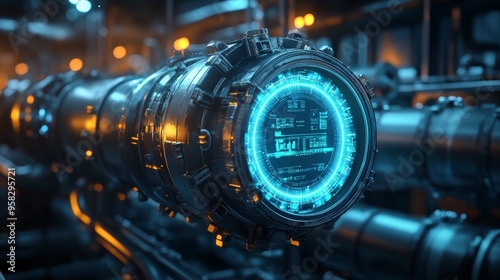 futuristic, water, meter, connect, sleek, metallic, pipe, industrial, set, illuminated, structure, aesthetic, atmosphere, holographic, illustration, visualisation, design, sophisticated, advance, display, infrastructure, modern, decor, environment, technology, ambience, innovative, urban, concept, measurement, gauge, level, flow, pressure, instrument, monitoring, liquid, oil, chemical, solution, volume, indicator, scale
