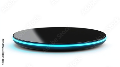 charger, wireless, charging, pad, dock, power, energy, technology, modern, device, contraption, electronic, accessory, tech, innovation, future, digital, smart, mobile, phone, smartphone, tablet, laptop, desktop, computer, electricity, current, light, led, blue, glow, circle, round, surface, design, sleek, black, futuristic, elegant, simple, clean, minimal, isolated, background, white, studio, product, object, illustration