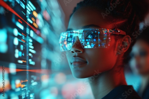 technology, innovation, virtual, futuristic, digital, team, ai, goggles, woman, cyber, interface, lifestyle, modern, science fiction, communication, datum, vision, design, creative, smart, reality, bright, portrait, urban, electronic, space, information, aesthetic, beauty, intelligence, connectivity, inspiration, adventure, dynamic, colours, trend, fashion, expression, insight, profile, artistry, engagement, exploration, atmosphere, perspective, background, minimal