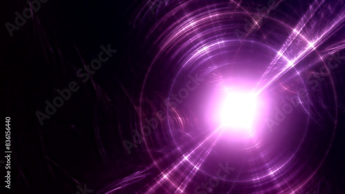 Futuristischer violetter Lichteffekt in hell leuchtender Energiestruktur. Geschwindigkeitseffekt. Abstrakte leuchtende Lichtlinien, bewegte Energiestrahlen, innovativ