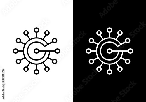 G letter logo design with dots, connection, technology, digital and health concept.