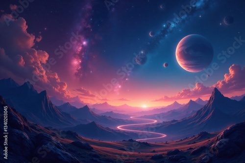 Galactic landscape with twinkling stars and planets in a cosmic scene, galaxy, cosmos