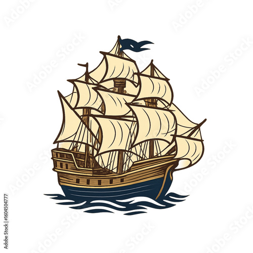 ship, boat, sea, sail, sailboat, sailing, yacht, vector, ocean, travel, nautical, vessel, pirate, illustration, water, old, icon, wave, transportation, symbol, adventure, cruise, marin, toy, model