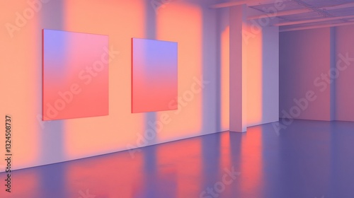 gallery, interior, art, sunset, light, modern, design, empty, reflections, space, architecture, room, wall, floor, abstract, background, minimal, contemporary, style, building, home, house, office, commercial, real estate, display, presentation, exhibition, artwork, canvas, painting, illustration, graphic, texture, scene, image, photo, picture, decor, interior design, photo