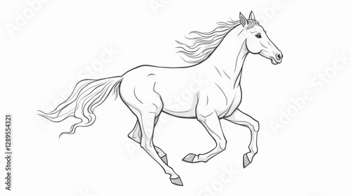 horse, galloping, drawing, modern, art, equine, mane, flowing, dynamic, movement, speed, power, elegance, minimalist, line art, vignetting, illustration, animal, wildlife, equestrian, abstract, black-and-white, monochrome, artwork, design, graphic, vector, image