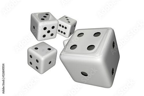Gambling Elements. White Casino Dices Throw 3D Isolated Graphic Illustration