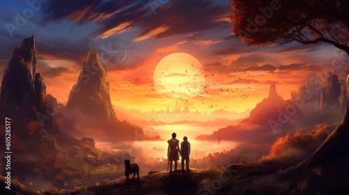 Game art piece that depicts a pivotal moment in the middle of an epic journey