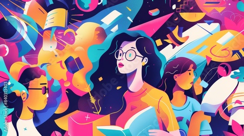 Gaokao theme, illustration style, creative and abstract, symbols of knowledge and learning, artistic and imaginative, vibrant and engaging
