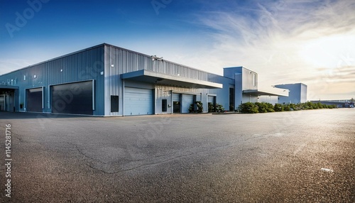 building, architecture, house, exterior, warehouse, sky, home, construction, industrial, factory, business, new, blue, outdoors, storage, door, structure, garage, industry, commercial, street, entrance, parking, empty, brick