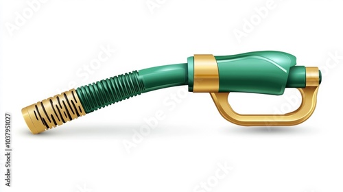 Garden hose nozzle isolated on a white background ergonomic green and gold water sprayer design. Generative AI