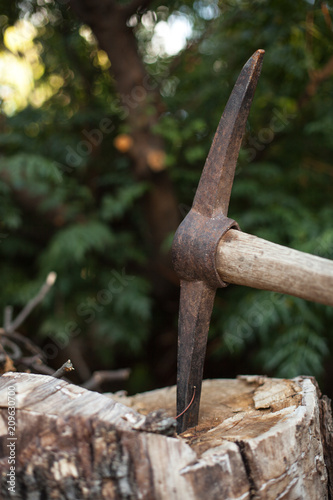 wood, old, tool, tree, metal, rust-eaten, isolated, log, steel, firewood, wooden, handle, work, iron, equipment, nature, timber