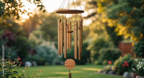 Garden wind chimes with fresh summer breeze background