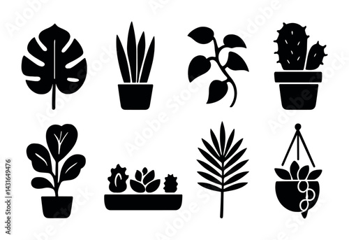 gardening, houseplant, nature, botany, silhouette, solid, vector, icon, set, design, foliage, greenery, monstera, succulent, botanical, leaf, horticulture, environmentally friendly, garden, home decor