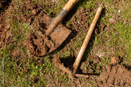 shovel, hoe, dirt, dig, garden, gardener, dirtied, backyard, agriculture, concept, farming, gardening, grass, landscape, season, tool, spring, work, used, agricultural, autumn, background, black, brown, closeup, colours, colourful, countryside, cultivate, environment, equipment, farm, farmer, farmland, green, ground, growth, hobby, macro, metal, nature, old, organic, outdoors, photo, plant, preparing, spade, wild