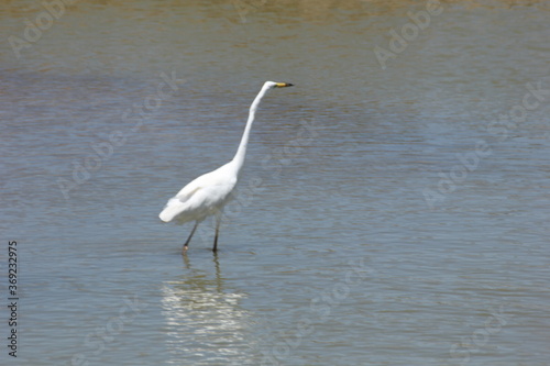 garza blanca con pico amarillo y negro