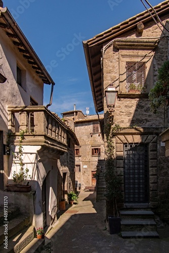 Gasse in der Altstadt von Bomarzo in der Region Lazio in Italien
