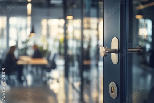 gaussian blurred photo with focus on door handle of a business people having meeting at table in modern office in Berlin