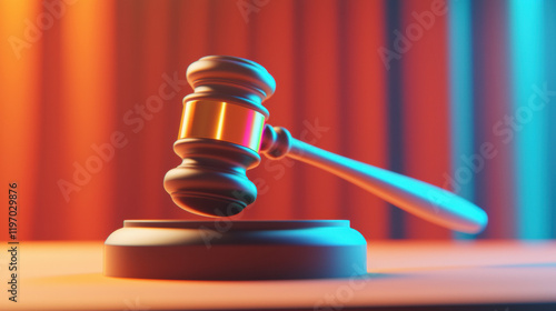 gavel rests on wooden block, symbolizing justice and law. vibrant background adds modern touch to this classic legal symbol