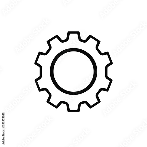 Gear doodle icon in flat linear design, simple black outline on solid white background.