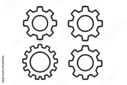 Gear icon set. Cogwheel collection. Settings, options, and configuration symbols. Simple linear vector illustration for web design, UI, and engineering or mechanical concepts.