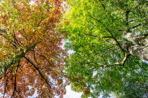 tree, green, nature, leaf, forest, heaven, autumn, twig, spring, leaf, summer, plant, yellow, forest, fall, park, blue, season, paint, light, garden