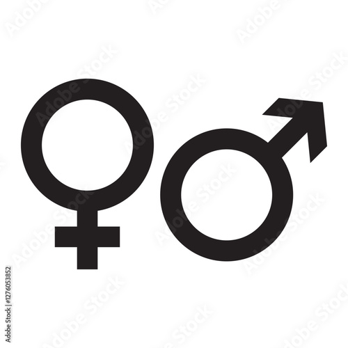 Gender symbols vector illustration. Male and female sex icons isolated on white background. Flat black design man and woman sign.