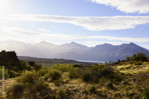 patagonia, chile, south america, panorama, nature, scenic, famous place, national landmark, day, no people, lake, body of water, mountain chain, geology, rock, terrain, cloud, sky, sunny, grass, silhouette, hill, ray, tranquil, outdoors