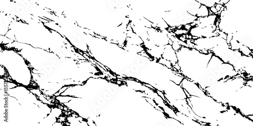 Generate a high-resolution, realistic image of a white marble slab with intricate black veining. Focus on capturing the natural flow and organic patterns of the veins.