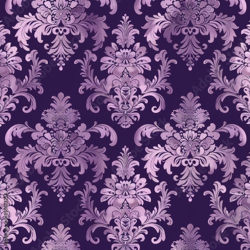 Generate a repeating Louis pattern with delicate damask designs. Use a single color like royal purple. The design should be ornate and classic, perfect for sophisticated fabric prints.