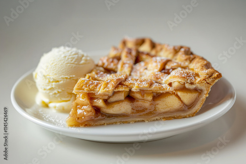 apple pie, dessert, pastry, sweet, classic, homemade, baked, apple, comfort food, traditional, creamy, indulgent, treat, plate, warm, delicious, food, baking, scoop, vanilla, simple, festive, wholesome, cinnamon, sugar, ice cream, cosy, rustic, food photography, fresh, pairing