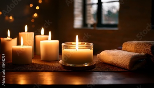 Generated image Warm glow of lit candles in a dark room creating a cozy atmosphere