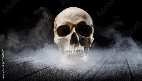 Generated imageSkull Fog In Dark Halloween Background - Real Mist On Black Floor