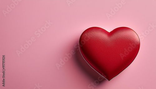ピンク色の背景の左側に赤いハート形のオブジェクトが配置されています。ハートの立体感と影の効果により、シンプルながらも温かみのある雰囲気が漂っています。全体的に愛やロマンチックな感情を表現したデザインです。generative AI