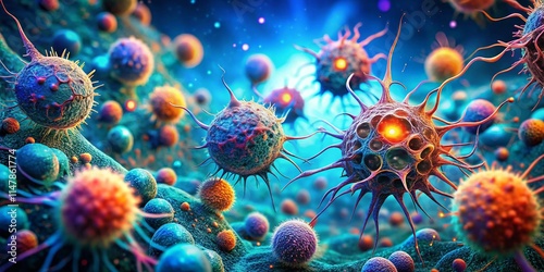 Generative AI Art: Surreal Blue Cancer Cell Microscopic Imagery