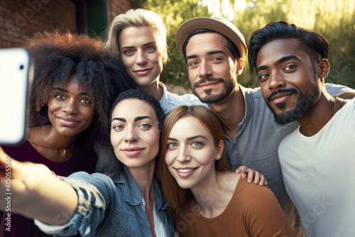 selfie, photo, multiracial, friendship, group, celebrate, college, community, diverse, friends, having, hipster, international, laughing, party, social, student, team, teenage, university, youth, mobile, people, happy, portrait, fun, face, woman, man, ai, illustration, generative
