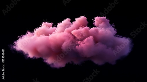 Generative pastel art of pink fluffy magenta smoke cloud in dark space